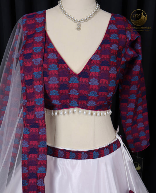 Authentic Nepali Dhaka Fabric Lehenga Choli – 3-Piece Set with Dupatta