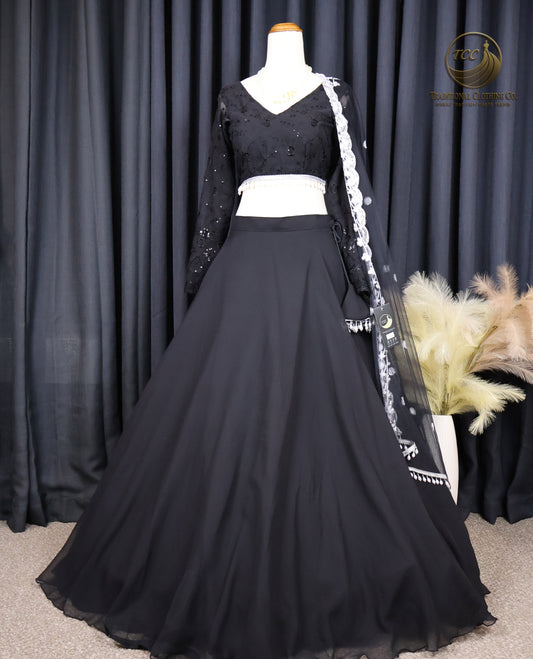 Black Embroidered Lehenga Choli with Sheer Dupatta – Timeless Traditional Wear