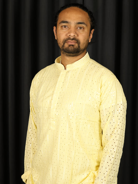 Chikankari Kurta – Elegance with Shimmer Accents | Yellow, Light Green, Peach, Dark Blue, Purple and Sky Blue